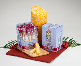 威斯康星州天然半硬奶酪;科尔比与蒙特利杰克的结合,有着金色和白色的大理石纹理,坚实质地、味淡、奶油的味道。