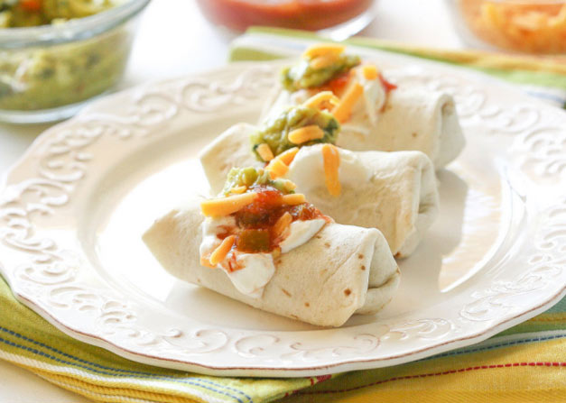在迷你卷饼顶部,配上您最喜欢的配料,如酸奶油,牛油果调味酱。